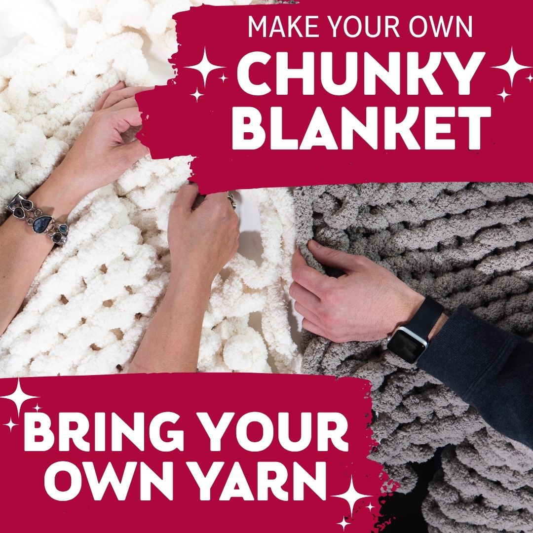 During this one-of-a-kind event, we will guide you step-by-step through hand-knitting a warm, soft, chunky knit blanket. No needles or knitting experience is required!