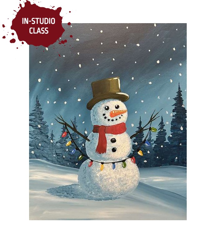 Let’s “light up” the holidays—literally! Paint your own glowing snowman wrapped in twinkling Christmas lights under a snowy winter sky. This jolly design is simple, sparkly, and full of holiday cheer—no experience needed! Grab your favorite drink, relax, and create a winter masterpiece you’ll love to display all season long.