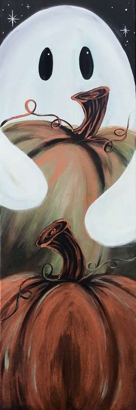 Come paint this spook-tacular scene where autumn meets a little ghostly charm! 👻
