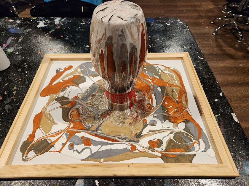 Play with paint! Experience acrylic pour and create a unique vase and canvas set. You have not had this much fun since finger painting!