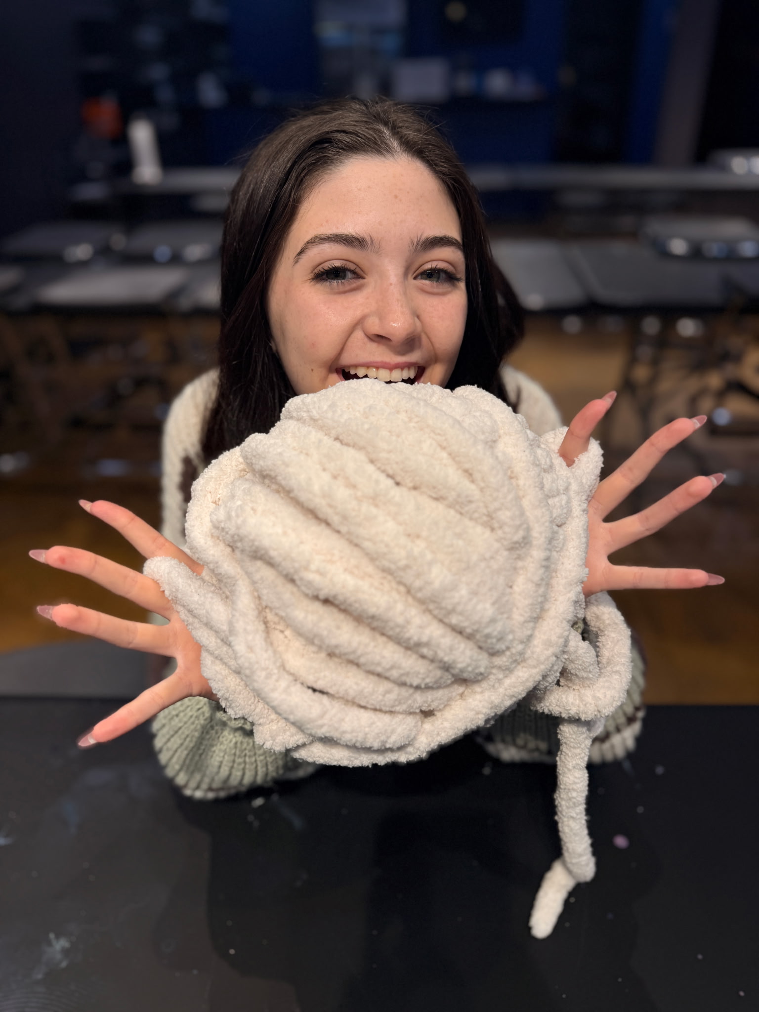 YARN WILL NOT BE PROVIDED FOR THIS CLASS, so please bring your own! We recommend 4 skeins of chunky chenille yarn for a 40”x 50” throw blanket. For larger blankets, 5-6 skeins can be used.