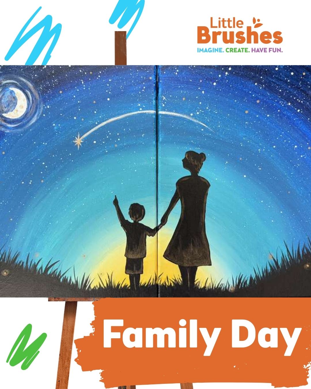 Capture a heartfelt moment under a star-filled sky with this enchanting painting. Featuring customizable silhouettes, this painting allows you to personalize the figures to reflect a cherished connection, that celebrates love, wonder, and togetherness.